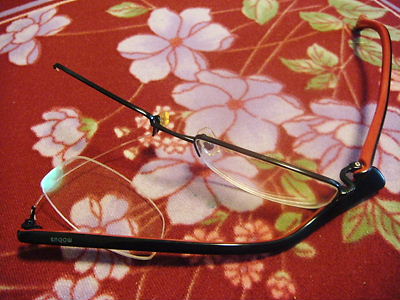 壊れた眼鏡。無残にも眼鏡を拭いていた私の手によって壊されました。